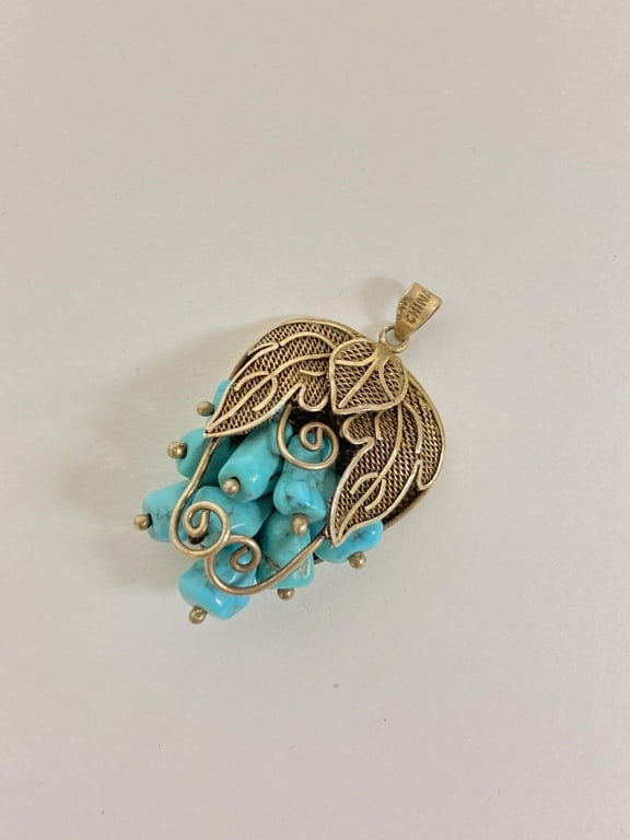 Turquose Bead and Silver Grape Pendant