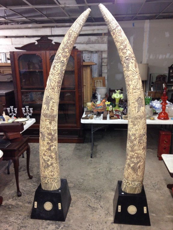 African Skulls & Horns Lot TaxidermyMar 19, 2026Mostly Faux Carvings, Some Authentic7 days LeftVintage Wood Carved Elephants with Bone DetailingMar 04, 2026A Pair of Thai Gilt Wood Display CabinetsFeb 26, 2026Vintage Monumental Plaster Elephant Tusks Set of 2 Ivory DecorFeb 27, 2026A group of mainly tribal weapons3 days LeftMonkey Riding Elephant Palm Tree Bamboo Candlestick Style Brown Faux Suede Tassel Shade Table Lamps6 days LeftMISC TREENWAREFeb 27, 2026An assembled group3 days LeftA Karl Springer (attrib) parchment/goat skin wrapped table3 days LeftTelescopeFeb 28, 2026Pair Of Large Chinese Tessellated Bone Tusk StatuesMar 03, 2026Ethic Tribal Relics Weapons and Tools Grouping (4pc)Mar 07, 2026African Ebonized Wood Elephant Sculptures, 2Mar 26, 2026Trompe L'oeil Painted Library 4 Panel ScreenMar 06, 2026An Empire style gilt bronze mounted etagere3 days Left