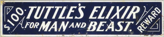 Tuttle's Elixir, "for Man or Beast", tin sign