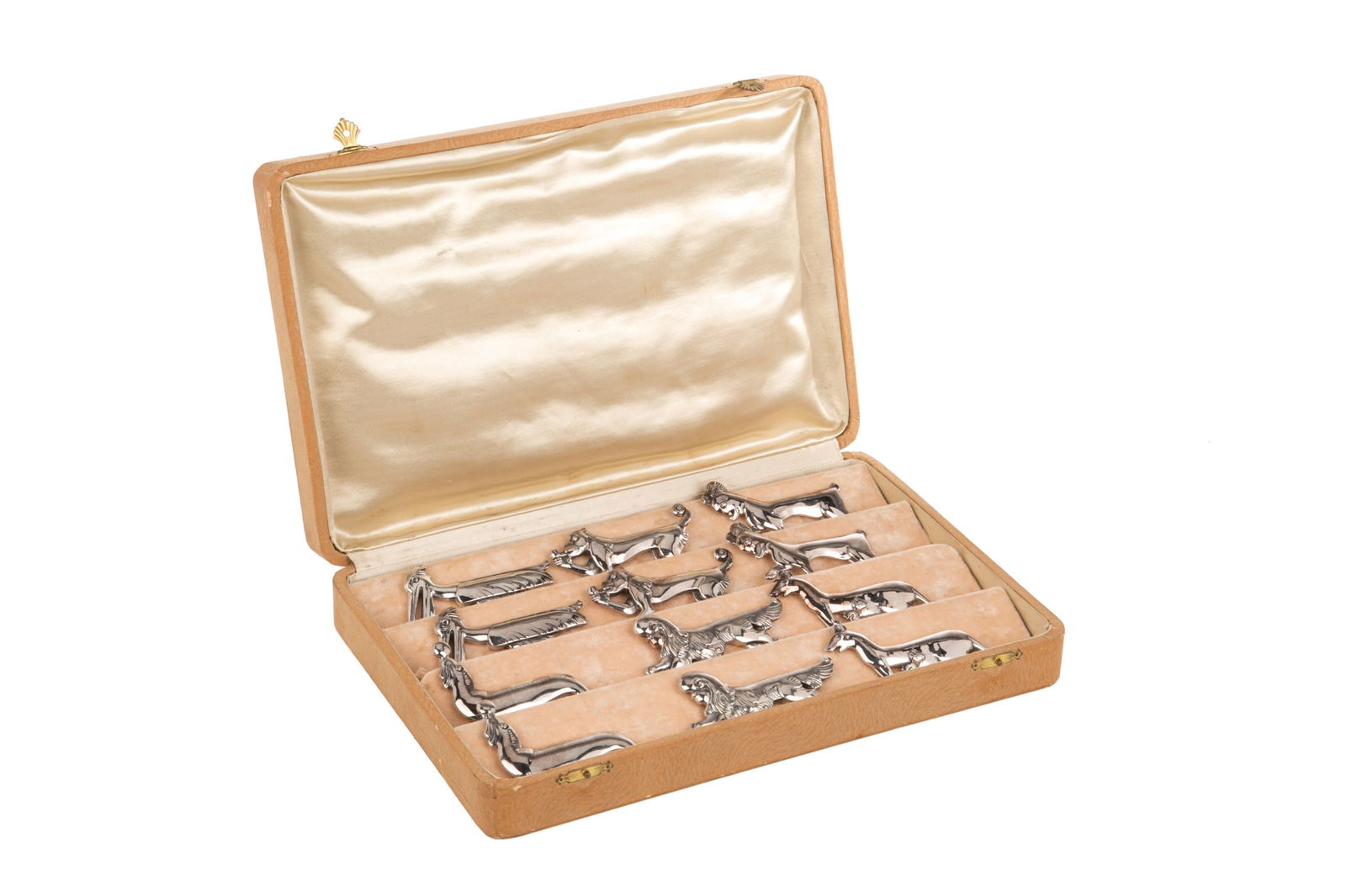 TWELVE ART DECO SILVER PLATED KNIFE RESTS