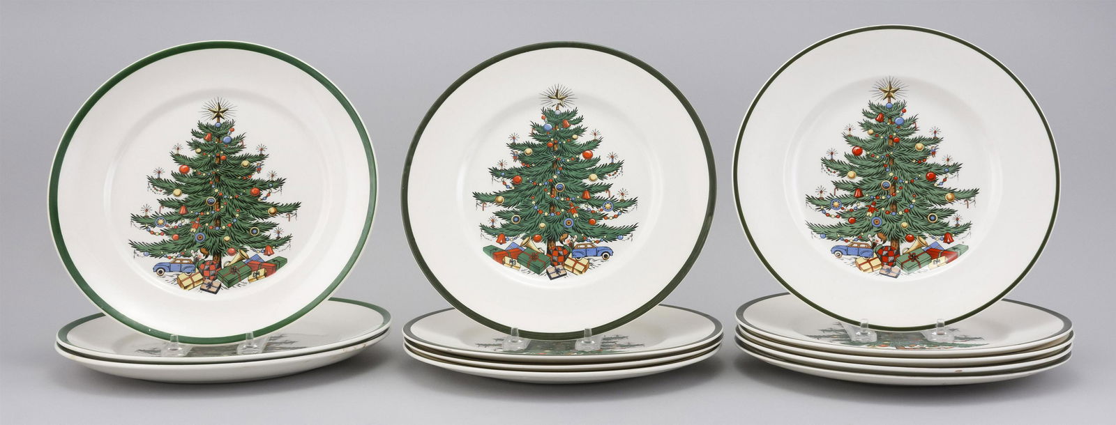 TWELVE ASSORTED PLATES WITH SIMILAR CHRISTMAS TREE