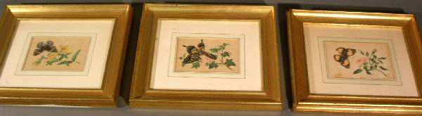 Twelve butterfly prints in gilt frames. 6"x4" ea.
