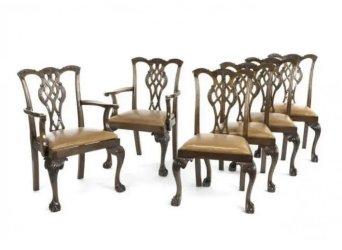 (10) PORTUGUESE BAROQUE STYLE CARVED & UPHOLSTERED DINING CHAIRS1 day LeftSet of 6 Antique Renaissance Dining Chairs in Leather - French Style6 days LeftSet of Twelve American Classical Mahogany Saber-Leg Dining ChairsMar 07, 2026Associated Group of Seven Irish Chippendale Mahogany Dining Chairs, 20th c., Arm Chairs- H.- 38 in.,6 days LeftA SET OF TEN MAHOGANY AND LEATHER UPHOLSTERED DINING CHAIRS, IN HEPPLEWHITE STYLE, CIRCA 1900Set of 10 Ej Victor Georgian Mahogany Dining Chairs with Leather Seats5 days Left(6) Leather Dining ChairsMar 01, 2026Set Of Four Hepplewhite Style Side Chairs On Casters (4)5 days LeftSet of 6 Mahogany Chippendale Dining Chairs by Old Colony6 hrs LeftSet of Eight Classical Style Mahogany Dining ChairsMar 07, 2026SET OF SEVEN CHIPPENDALE STYLE DINING CHAIRSMar 06, 2026Set of 6 mid century dining room chairs in mahogany finishMar 08, 2026Six English Chippendale Style Mahogany Dining Chairs, 20th c., Each- H.- 38 in., W.- 24 in., D.- 216 days LeftSet of 8 Councill Chippendale Mahogany Dining Chairs with Carved Details6 days LeftSet 8 vintage chippendale style mahogany dining room chairs Paramount Furn.Mar 08, 2026French Antique Henry II Dining Chairs with Embossed Leather Seats3 days Left