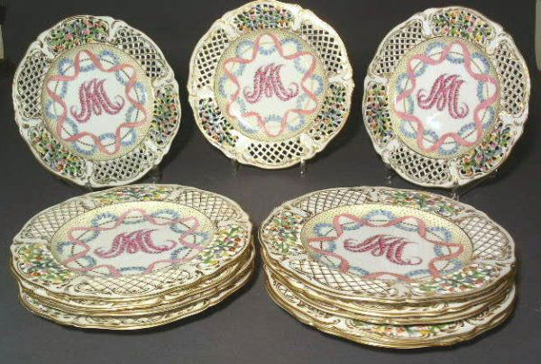 Twelve Dresden service plates with pierced edging