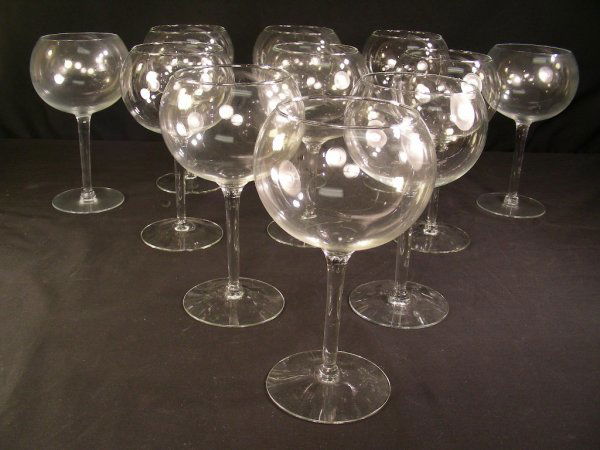 TWELVE LARGE ROUND STEM WINE GLASSES