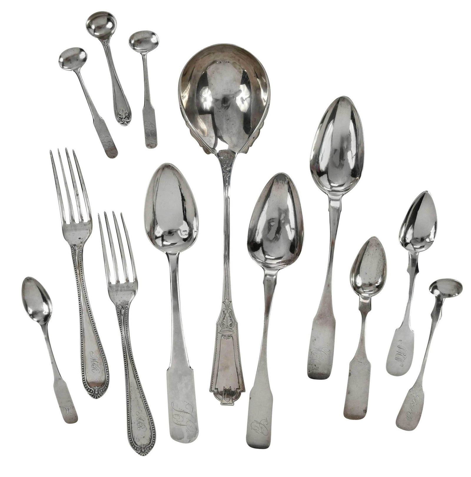 Twelve Pieces Virginia Coin Silver Flatware