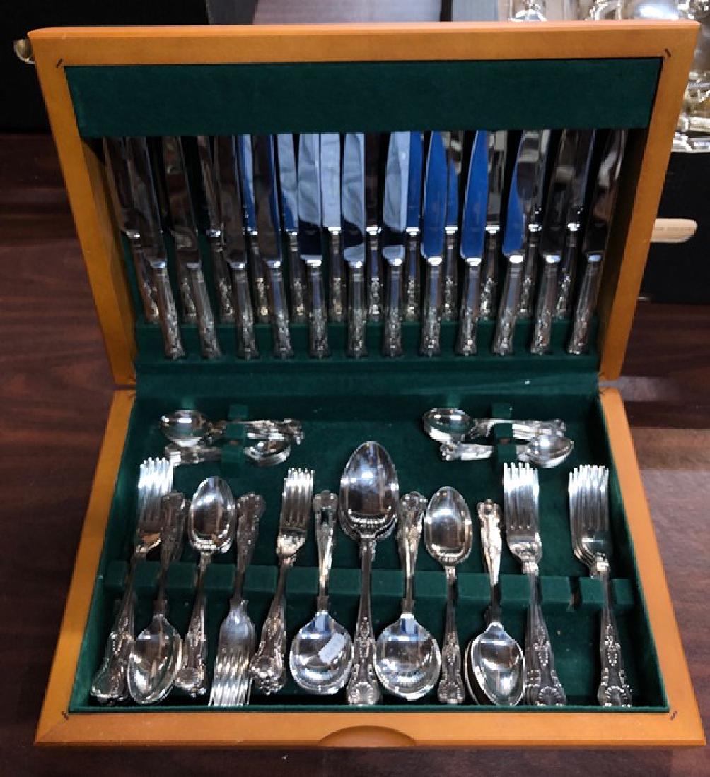 Twelve setting Kings pattern flatware etc.