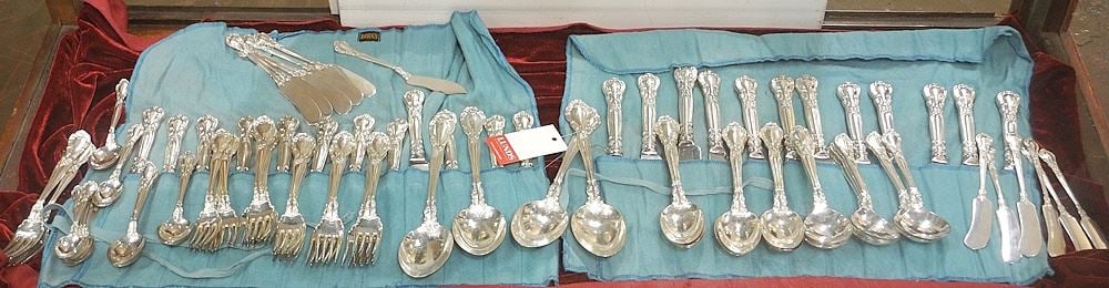 Twelve Settings Birks Chantilly Sterling Silver Flatware, 3291 Solid