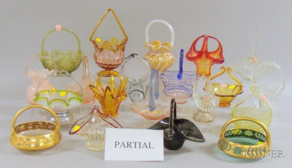 Twenty-five Assorted Colored Art Glass Bride's Bask