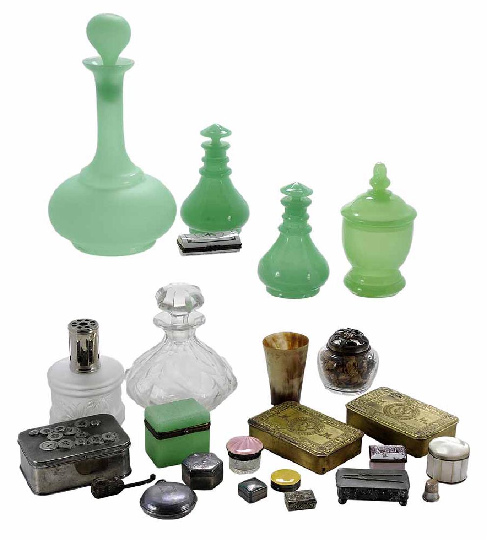 Early Glass Bottle Lot (10)Mar 28, 2026LOT ANTIQUE BRONZE BOXES, VANITY ITEMS, ETC15 hrs LeftHUGE LOT ASSORTED ANTIQUE GLASS SCENT BOTTLES, ETC15 hrs LeftHUGE END OF ESTATE DEALER LOT: COLLECTIBLES, ETC.15 hrs LeftLot of European Perfume/Scent Bottles and American Pressed Glass TumblersMar 21, 202619th/20th Century Women's Vanity Make-up Sterling Silver Lot (6)Mar 28, 202614 Porcelain, Wood, Musical, Glass & Inlaid Boxes6 days LeftSIX ANTIQUE CUT GLASS & CRYSTAL SCENT BOTTLES, ETC15 hrs LeftASSORTED TRIBAL / ETHNIC DECORATIVES, ETC15 hrs LeftFrench Silver, Glass & Silver Overlay Vanity 6pcs6 days LeftSix Amer & Bohemian Glass Perfume/Cologne BottlesMar 14, 2026A Group of Fourteen Chinese Canton Enamel Articles 18th-19th CenturyMar 24, 2026A Collection of Decorative Table Articles40 pcs Misc. Vintage Advertising EphemeraMar 17, 2026Group of Colored Glass Table Articles6 days LeftA Collection of Colored Glass and Ceramic Vases and Bottles