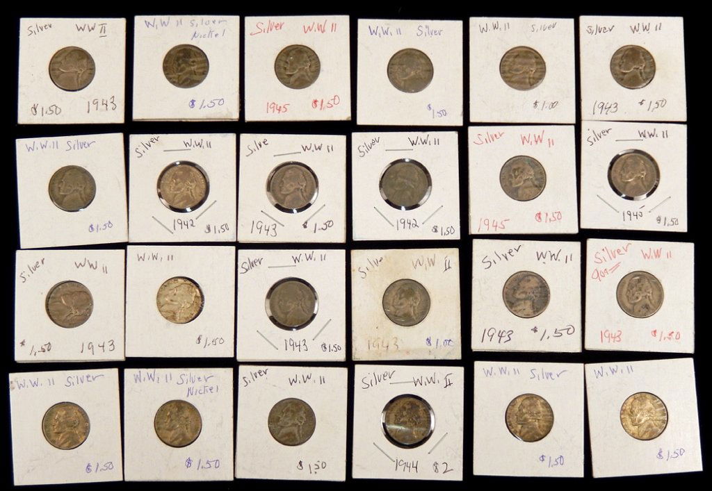 Lot of Nickel CoinsMar 10, 2026Lot of Buffalo NickelsMar 14, 2026ASSORTED UNITED STATES SILVER COINS, LOT OF 1411 day LeftUS Seated Liberty Barber Early Silver Coin 28p LOTMar 11, 2026Jefferson Nickel Collection Lot of 32 Thirty Two Nickels CoinsMar 19, 2026US 1939-1964 A Lot of Washington Quarters, 90% Silver, KM-164ASSORTED UNITED STATES SILVER AND SILVER-CLAD HALF DOLLAR COINS, LOT OF 501 day LeftNine Quarters Including 1932-DMar 20, 2026Seated Liberty And Barber Dimes Quarters Half DollarsMar 20, 2026Grouping of United States Silver DimesMar 20, 2026COMPLETE SET OF 40% SILVER WAR NICKELS1 day LeftUS 1938-1961 Jefferson Nickel Collection, Cupro-Nickel and SilverUS 1873-1962 Silver Coin Collection, Half Dime, Quarters, DimesA Collection of United States Jefferson Nickels and Emergency Coinage Set No. 1Mar 26, 2026US 1929-1945 Walking Liberty Half Dollar Collection, 90% SilverUS 1913-1937 Buffalo Nickel Collection, Copper-Nickel