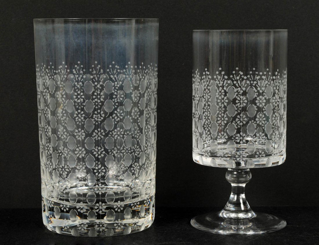 Sold67 PIECES ST. LOUIS GILT-DECORATED CUT COLORLESS CRYSTAL STEMWARE.67 PIECES ST. LOUIS GILT-DECORATED CUT COLORLESS CRYSTAL STEMWARE. One set includes 6 water goblets, 10 champagne flutes, 12 white wines, 4 cocktail glasses, and six liqueurs. Other set includes 12 rSee Sold Price