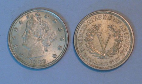 1867 Uncirculated Shield Nickel And V Liberty Nickels