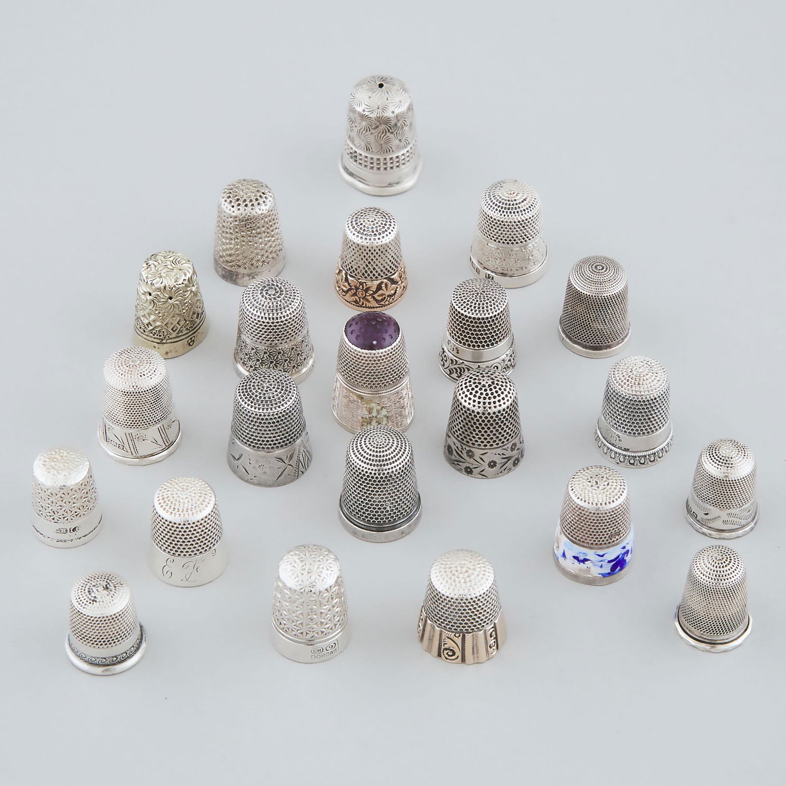 Twenty-Two Various Mainly Silver Thimbles, late