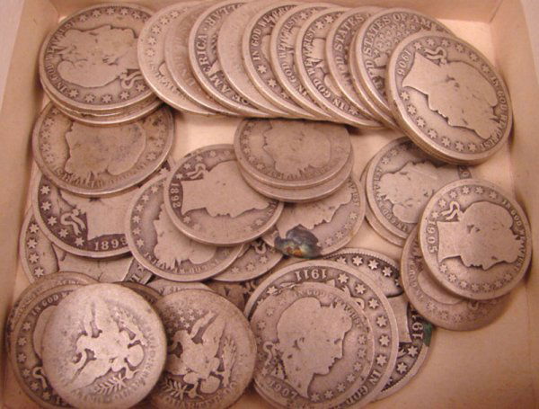 Twenty U.S. Barber Half dollars + 21 Barber quart