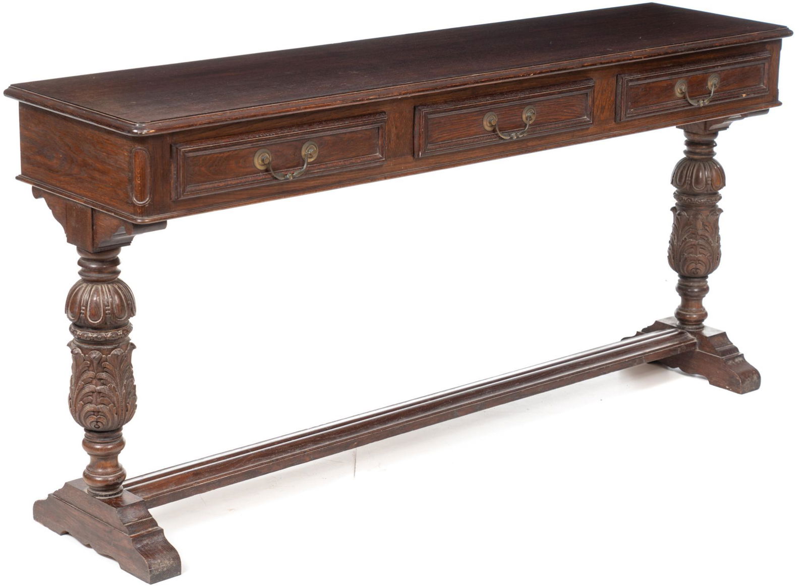 EIGHTEENTH CENTURY OAK TABLE WITH TWO DRAWERS AND TWIST FORM LEGS.Mar 24, 2026CHINESE ALTAR TABLE5 days LeftLarge Italian Style Oak Parquetry Monastery Table, 20th c., H.- 30 in., W.- 102 in., D.- 39 1/2 in.Mar 27, 2026Chippendale Style Mahogany Two Pedestal Dining Table, 2 Leaves 20th Cent., H 30" W 44" L 76"Mar 19, 2026CARVED ZITAN WAISTED ALTAR TABLE WITH JOINED STRETCHERS3 days LeftTuscan Style Solid Wood Triple Pedestal Pastry Table 130-In Oval Top4 days LeftAntique Oak Dining Table with Five Baluster Legs and CastersMar 23, 2026George III Mahogany Sofa Table,4 days LeftJacobean style refectory table, six turned and carved legs, box stretcher, carved and shaped apron,7 days LeftButler Hand-Carved Peyton Console Table Oak Brown3 days LeftArts & Crafts C1910 Carved Oak Library Table with Lyre Legs5 days LeftTuscan Style Rustic Walnut Dining Table 8-Ft Double PedestalMar 20, 2026French Charles X Inspired Low Table, 20th/21st c., H.- 19 in., W.- 47 in., D.- 25 1/2 in.Mar 26, 2026SEVENTEENTH CENTURY SPANISH TABLE HAVING TWO DRAWERS AND A STRETCHER BASE.Mar 24, 2026ANTIQUE FRENCH RENAISSANCE STYLE CARVED OAK LIBRARY/CENTER TABLEMar 21, 2026A George III mahogany sofa table, c.1810,Mar 18, 2026