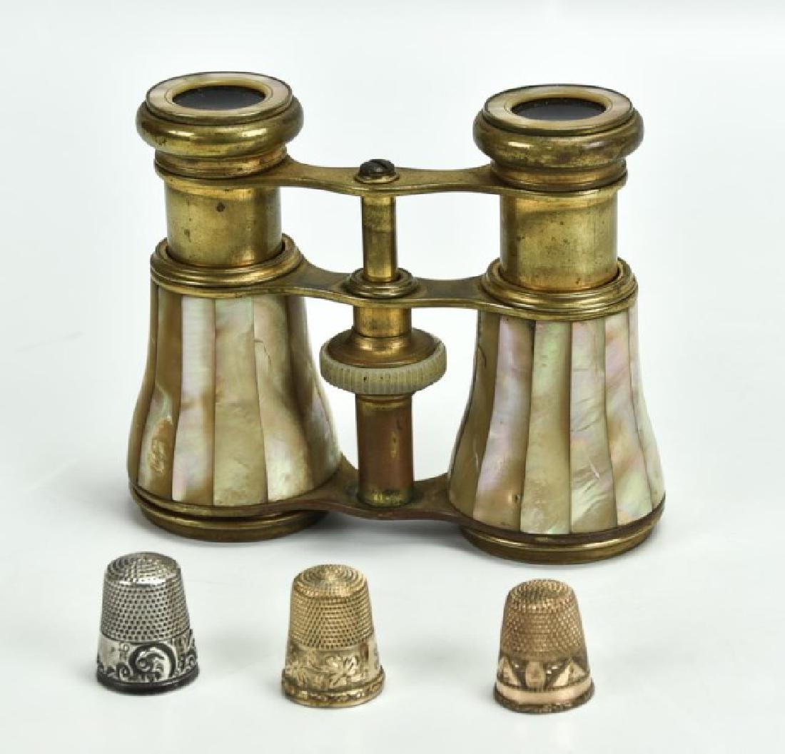 Lot of 8 Vintage Sterling Silver ThimblesMar 01, 2026A composed lot of four religious silver and silver-plated brass church objects4 days LeftSEVEN ANTIQUE & VINTAGE PAIRS OF OPERA GLASSESMar 07, 2026Pair of Sterling Silver Thimble Design EarringsFeb 28, 2026(2) ESTATE 14KT GOLD MULTI-CAMEO RING & GOLD PLATED COSTUME BAND6 hrs LeftRare Antique Chevalier Optician Paris Bone & Brass Opera Glasses, FranceMar 01, 2026ANTIQUE SILVER THIMBLES AND SEWING BIRD3 days LeftCollection of Ten Thimbles - Some with Ornate Designs - Some Engraved - One Marked Germany7 days LeftLEMAIRE PARIS, GUALDONI, OPERA GLASSES / BINOCULARS2 days LeftGroup of 8 Ornate .925 Sterling Silver ThimblesMar 07, 20262 German Brass MicroscopesMar 14, 2026SHAFT BELL, BRASS ANVILS AND TOP7 days LeftTHREE METAL LANTERNS 19th Century Heights from 9.75" to 12.5".Mar 04, 2026Gent's 14k Gold Formal Dress Acces. & Lady's RingMar 13, 2026THREE NICKEL PLATED BICYCLE LANTERNS Late 19th/Early 20th Century Heights from 5.5" to 7.25".Mar 04, 2026FIVE BRASS FLUID LAMPS 19th/Early 20th Century Heights from 6" to 12".Mar 04, 2026