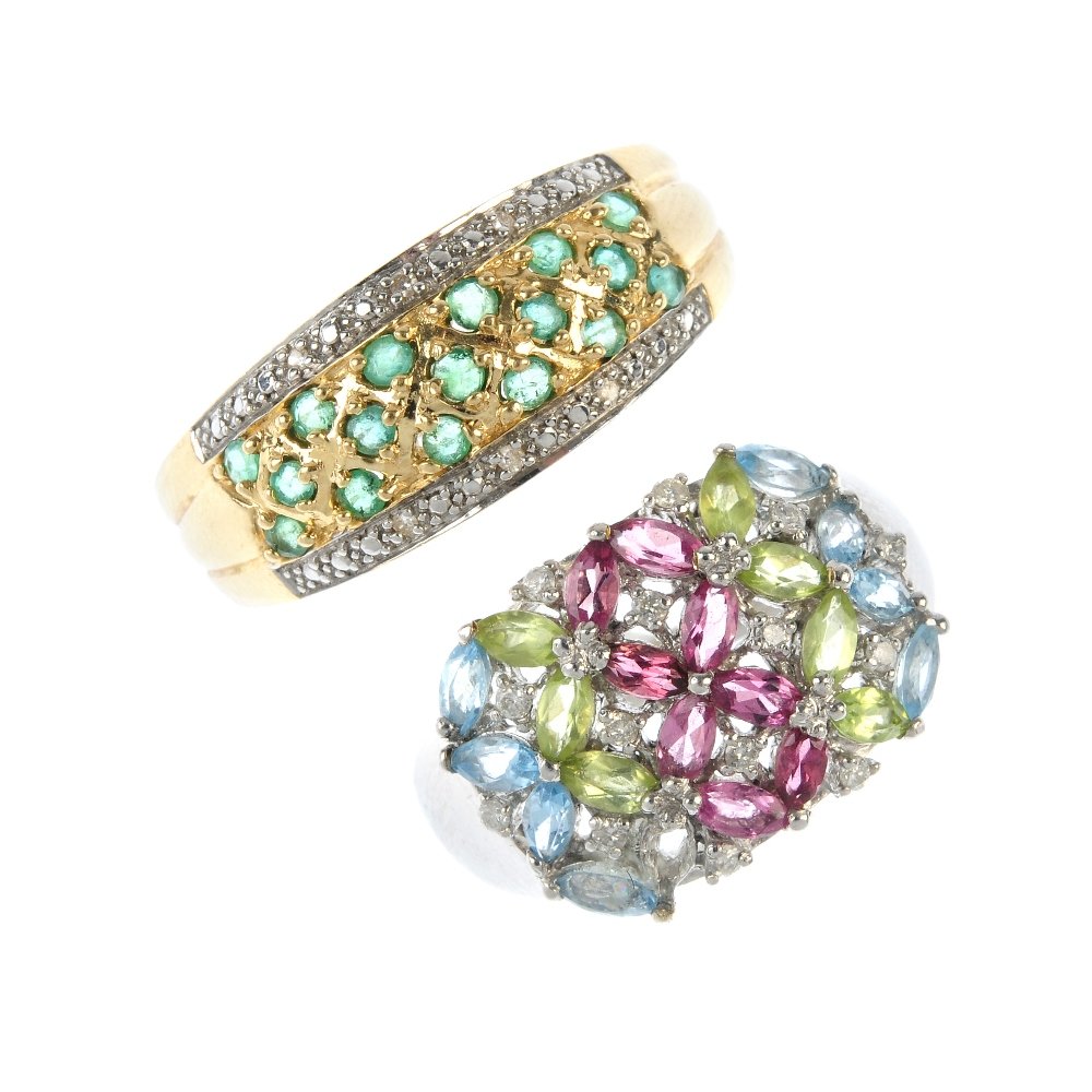 Two 14ct gold diamond and gem-set rings.