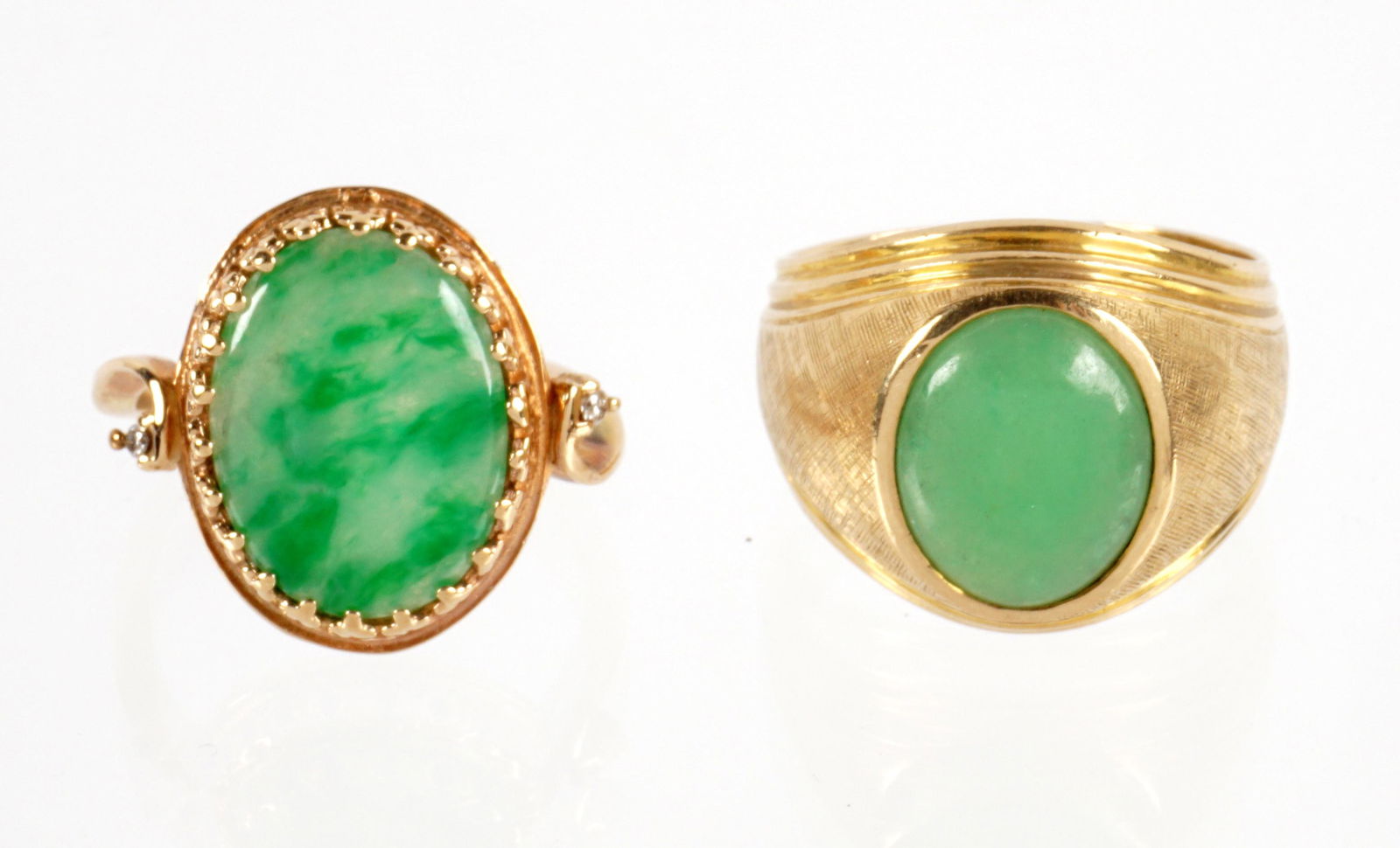 Two 14k Gold and Jade Rings