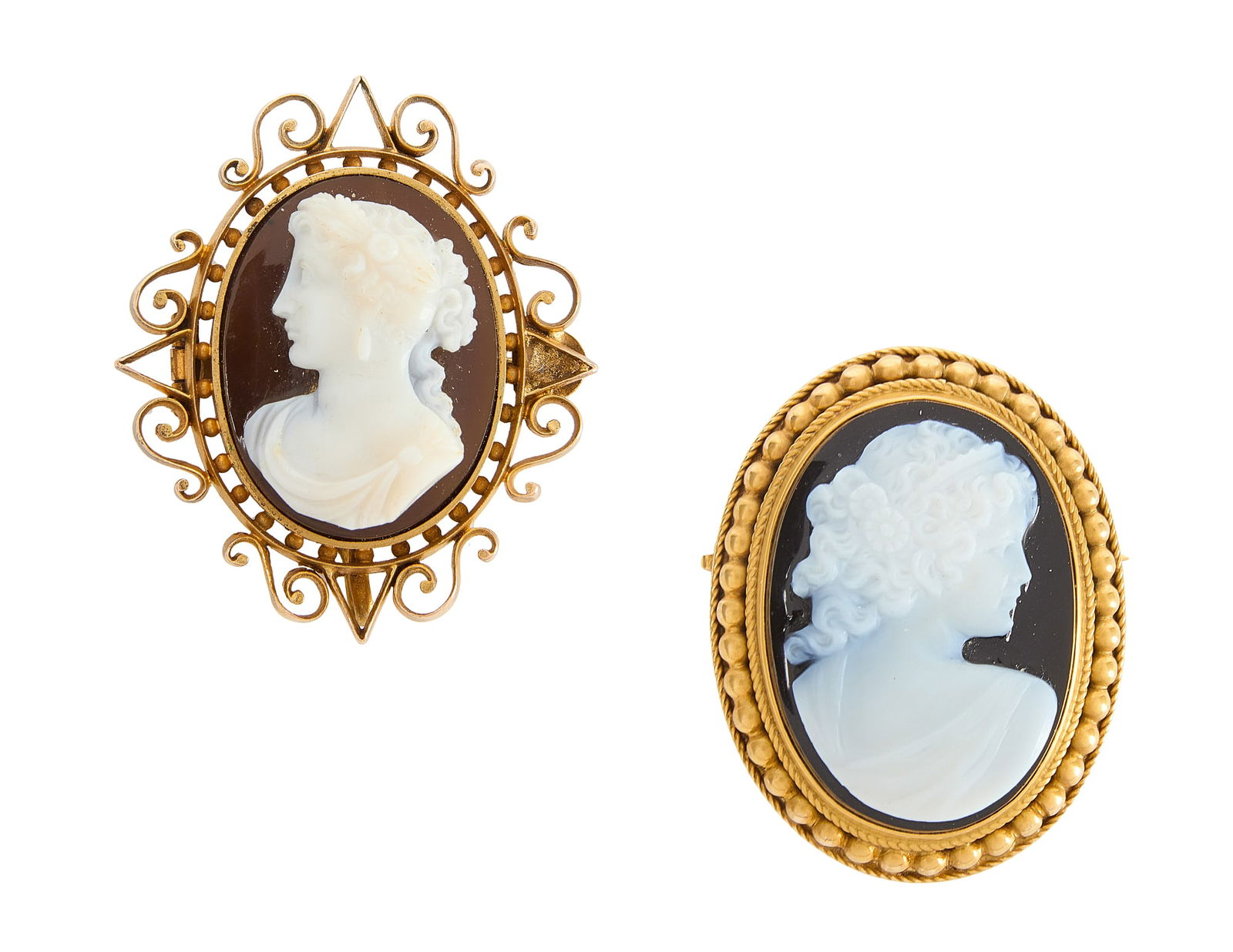 Two 14k Hard Stone Cameo Pins