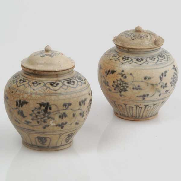 Lot of two Chinese blue and white porcelain jars6 hrs LeftChinese Antique Blue & White Porcelain Bottle LOTMar 11, 2026MID-ATLANTIC DECORATED STONEWARE JARS, LOT OF TWOMar 06, 2026A lot of two antique Japanese blue and imari style various decorated porcelain vases2 days LeftA lot of two Chinese Qianjiang yenyen-shaped porcelain vases2 days LeftA lot of two Chinese blue and white Fu-lion and bird decorated porcelain vases2 days LeftA matching lot of two Chinese porcelain vases, finely decorated in blue and white with copper-red on2 days LeftA pair of blue and white porcelain covered jars with fish and algae design from the Chenghua period8 hrs LeftA pair of Ming Dynasty, Jiajing period, blue and white porcelain jars with polychrome floral and8 hrs LeftSet of two Chinese Green-Glazed Relief Porcelain Jars4 days LeftChinese Black Glazed Pottery Storage Vessels, 24 days LeftA pair of hand-painted blue-and-white porcelain jars with gold-painted figures of generals, dating7 hrs LeftMing Dynasty Wanli Era Blue and White Fish and Grass Pattern General Jar Pair5 days LeftPair of Chinese Blue and White Covered Jars, Late Qing, c.1900Mar 01, 2026A pair of Ming Dynasty Tianshun blue and white underglaze red Arhat-themed flat vases with double8 hrs LeftVintage Asian Vases (2)6 days Left