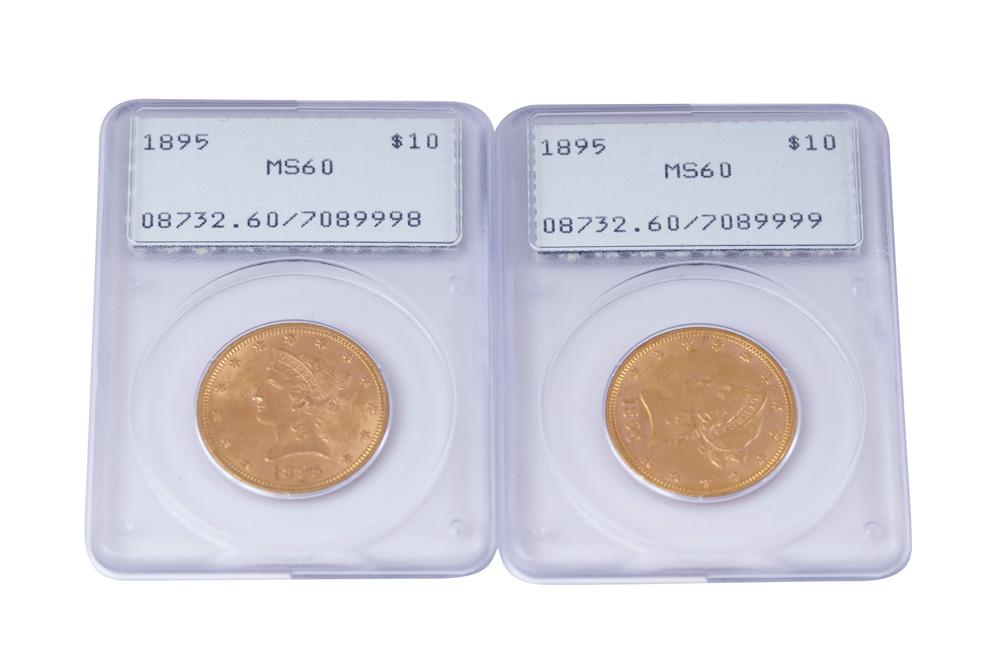 TWO 1895 $10.00 GOLD COINS