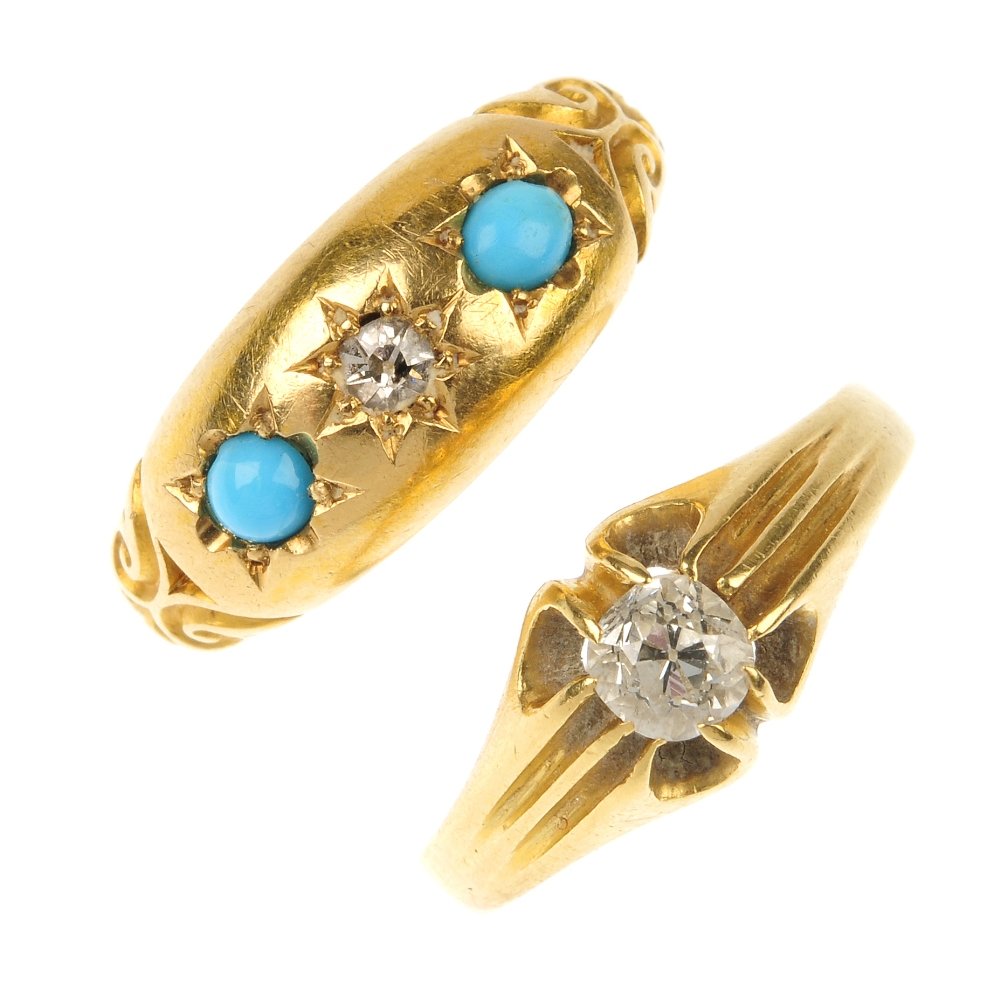 Two 18ct gold diamond and gem-set rings.