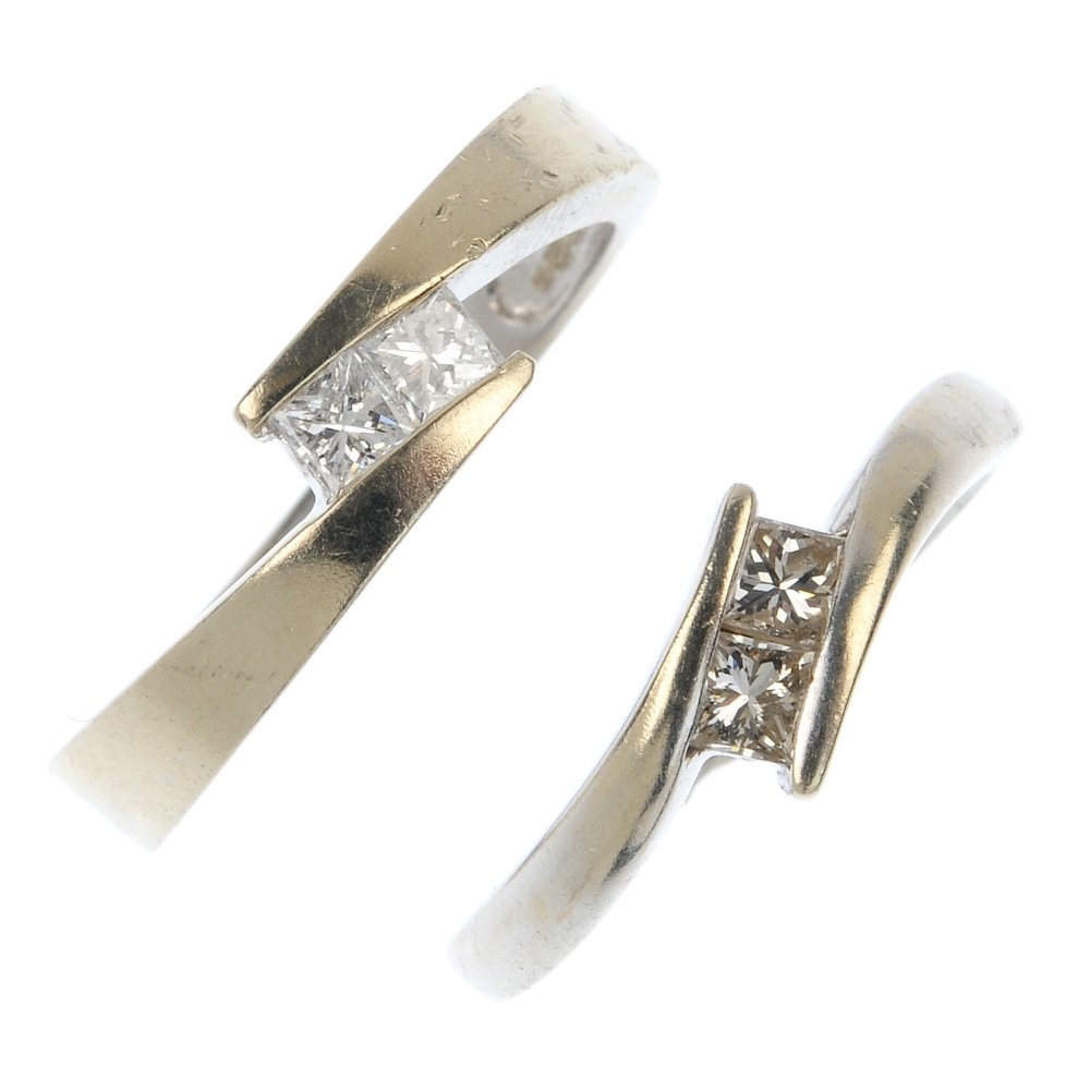 Two 18ct gold diamond two-stone rings.