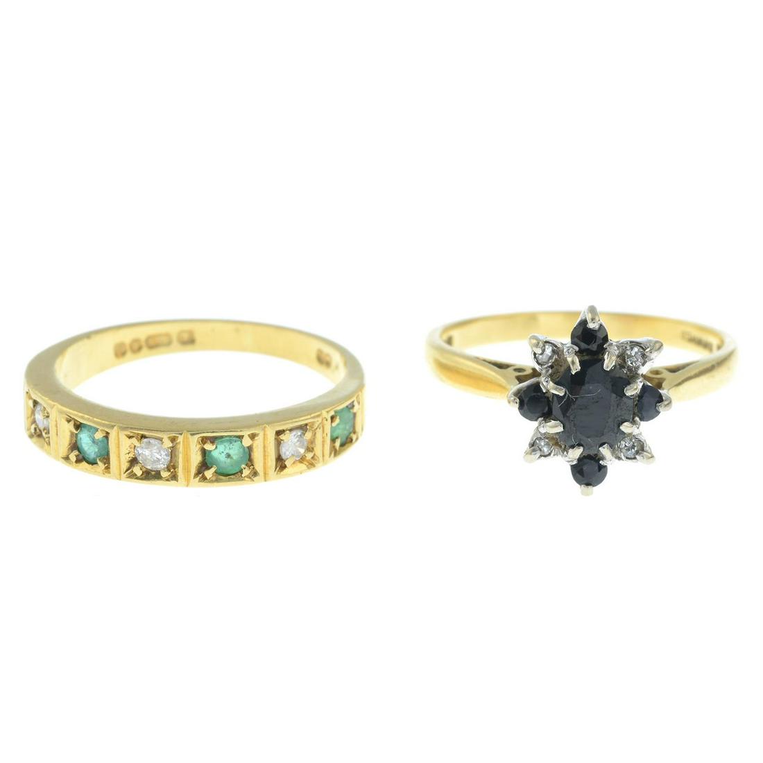 Two 18ct gold gem-set and diamond rings.