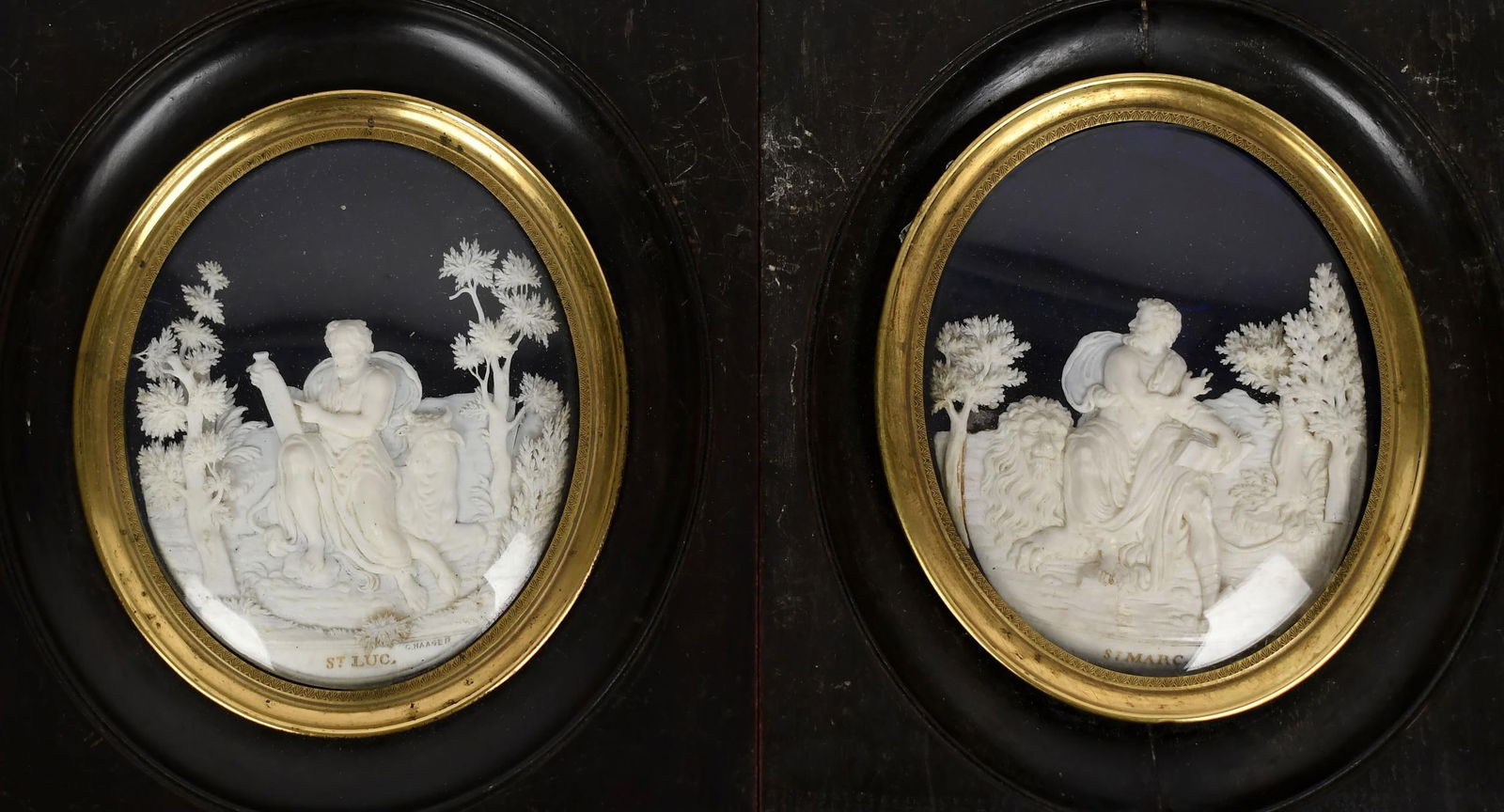 TWO 18TH C. C. HAGER RELIEF BONE CARVINGS.