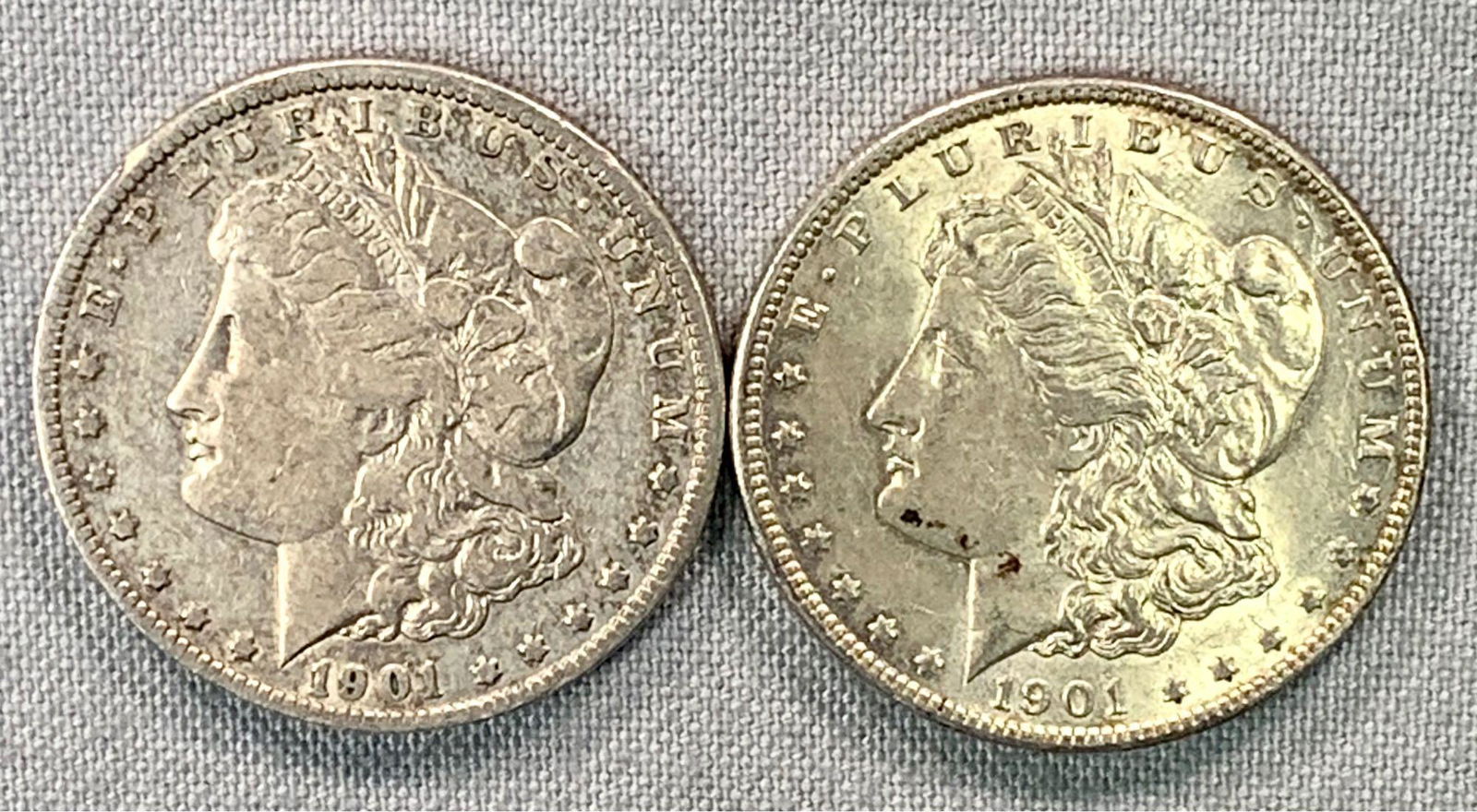 Two 1901-O Morgan Silver Dollars