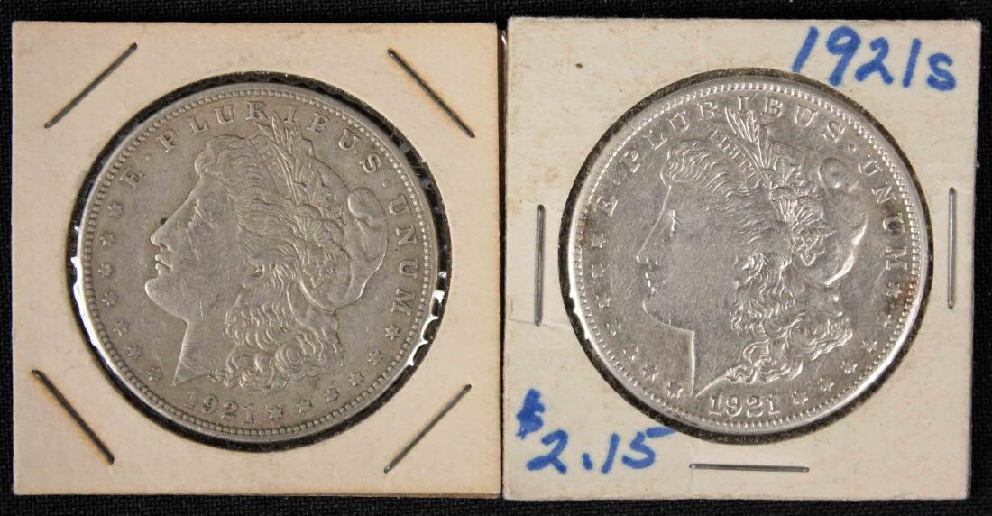 Two 1921 S Morgan Silver Dollars