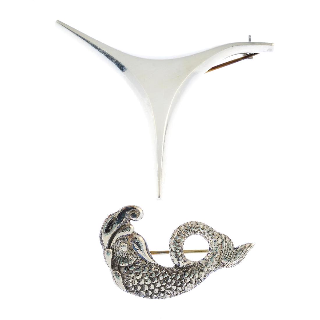Two 1960s silver brooches. To include an abstract