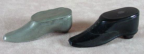 TWO 19TH C. SHOE SNUFF BOXES