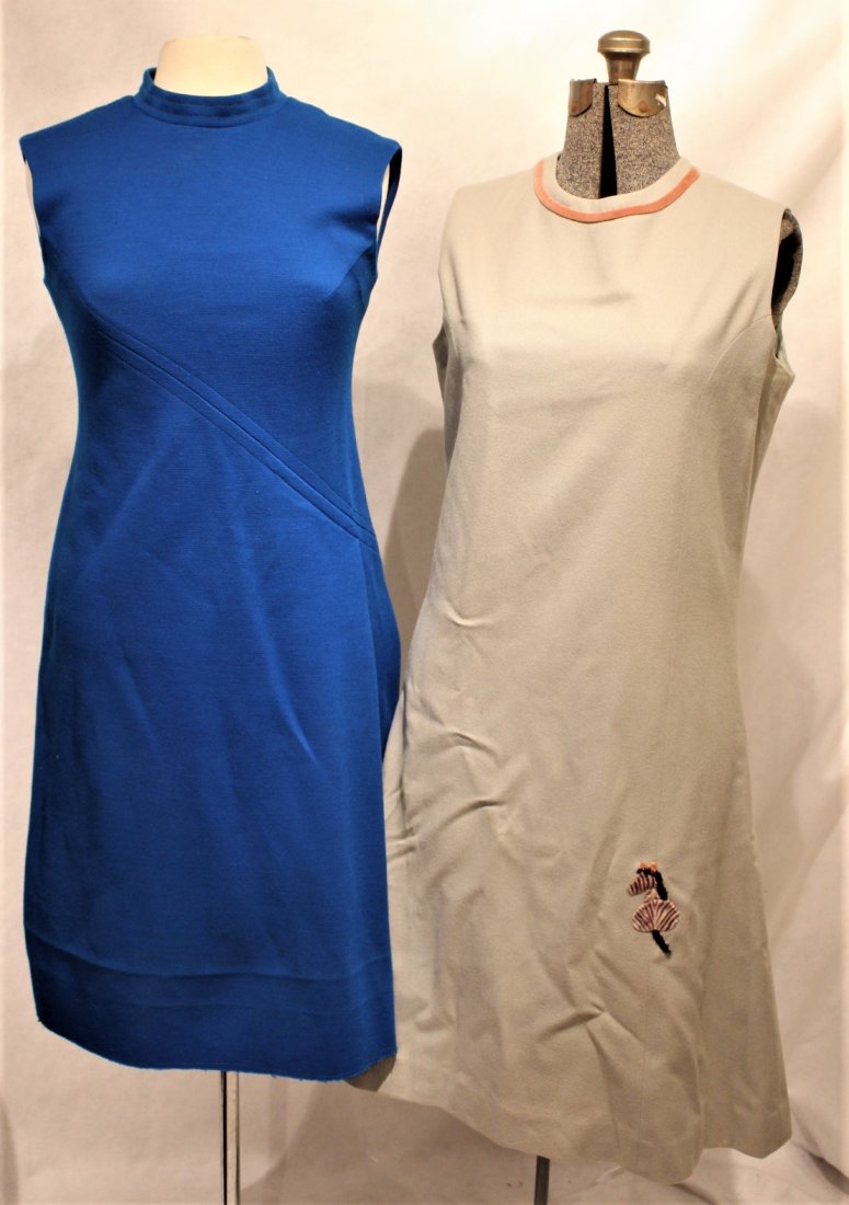 SoldTwo [2] 1950s Formal Dresses - Adele Martin , HadleyTwo [2] 1950s FORMAL DRESSES - Adele Martin [blue dress] approx size small, edge hemmed, Hadley [greyish green] size 14See Sold Price
