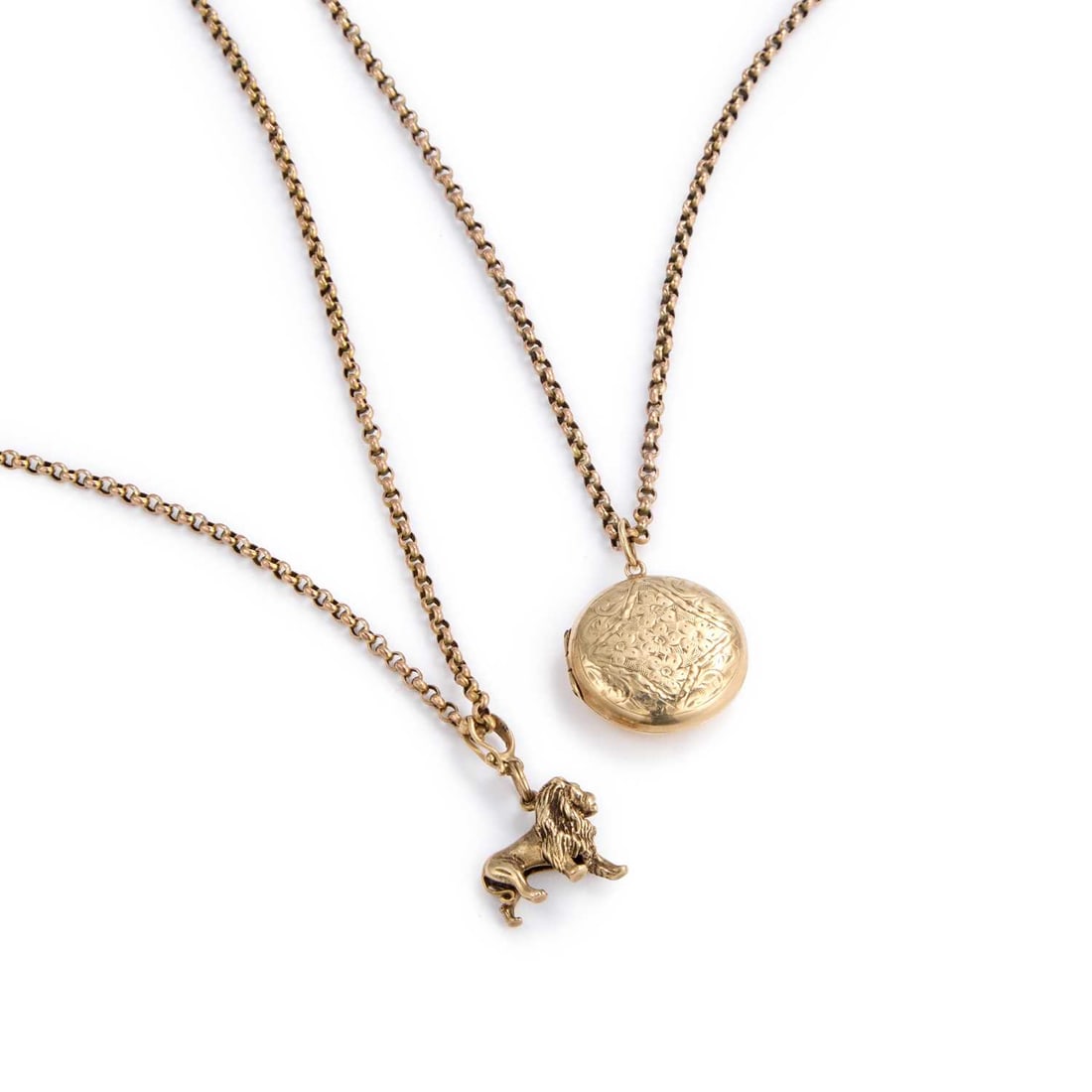 TWO 9 CARAT GOLD PENDANTS ON CHAINS