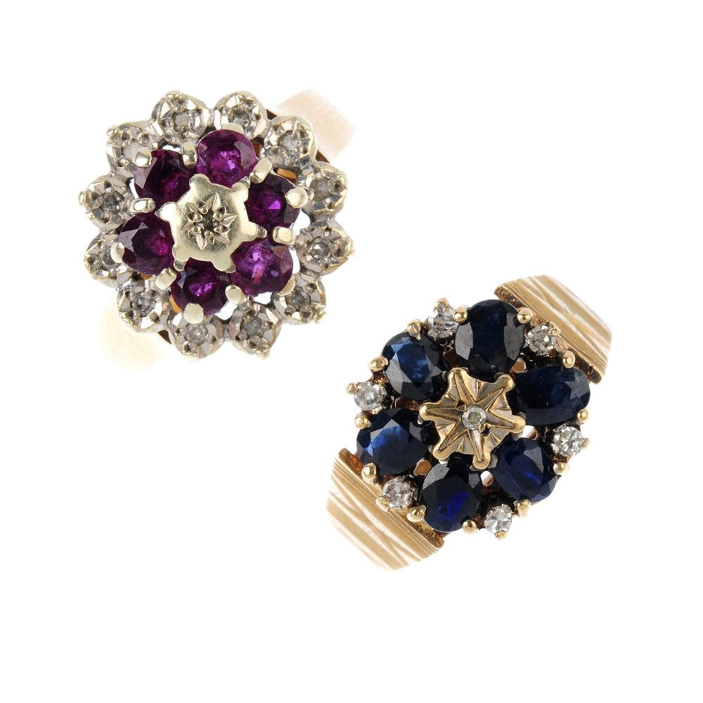 Two 9ct gold diamond and gem-set rings. To include two