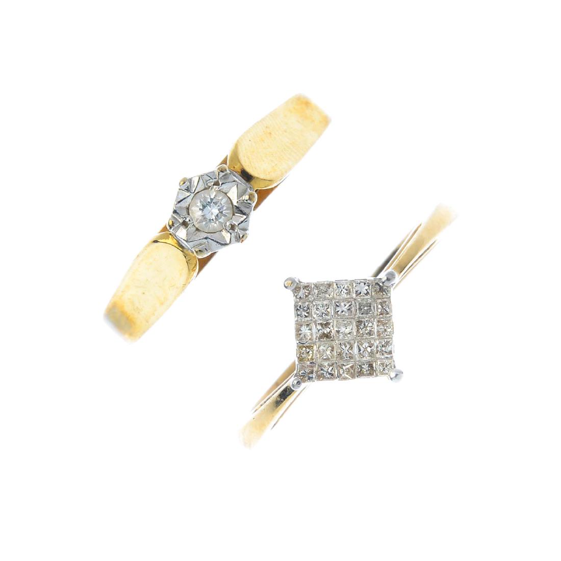 Two 9ct gold diamond rings. To include a circular-cut