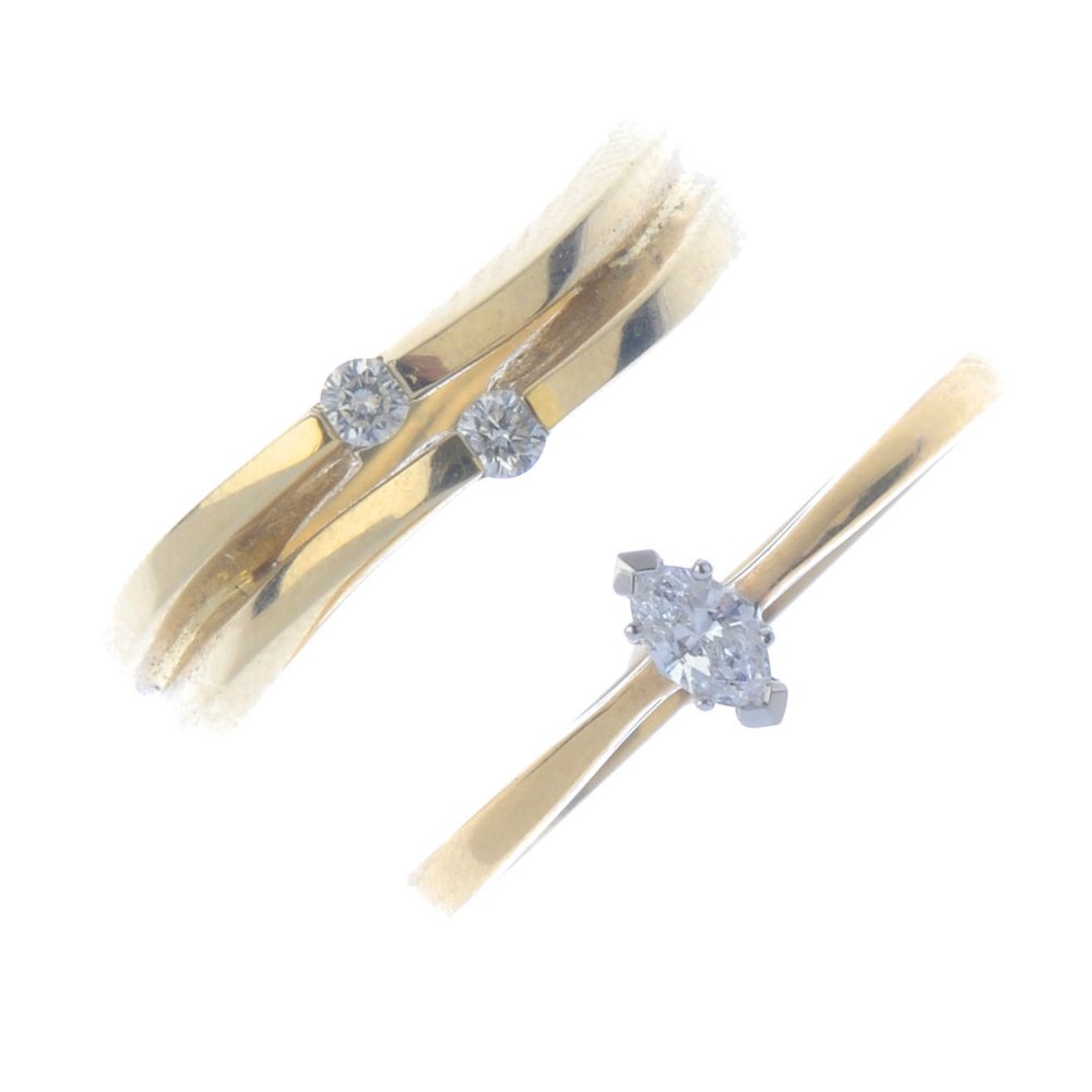 Two 9ct gold diamond rings. To include a marquise-shape