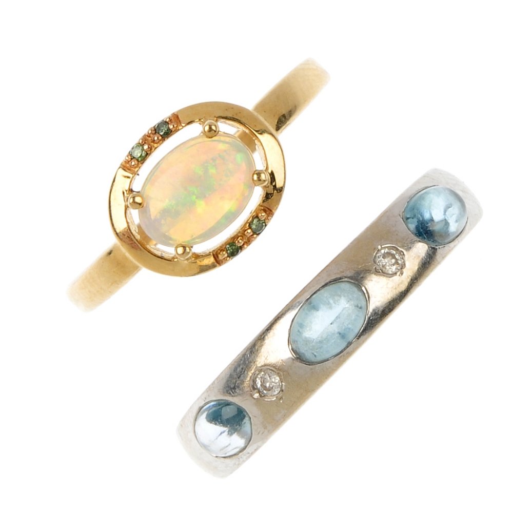 Two 9ct gold gem and diamond rings.