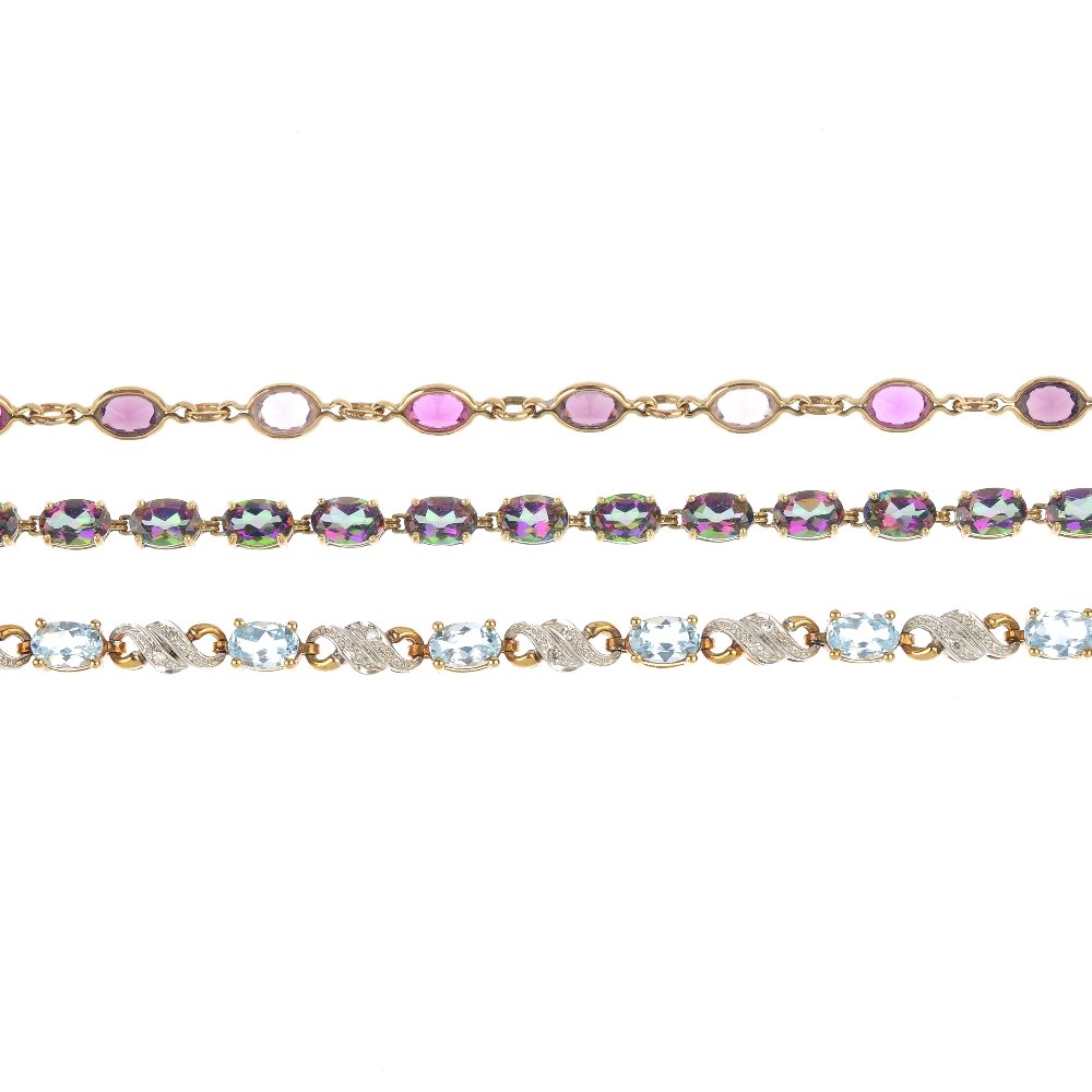 Two 9ct gold gem-set bracelets and a paste bracelet.