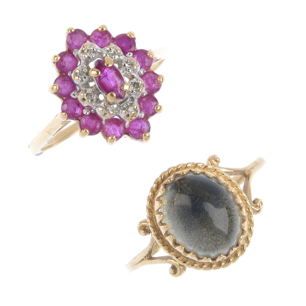 Two 9ct gold gem-set dress rings. To include a ruby and