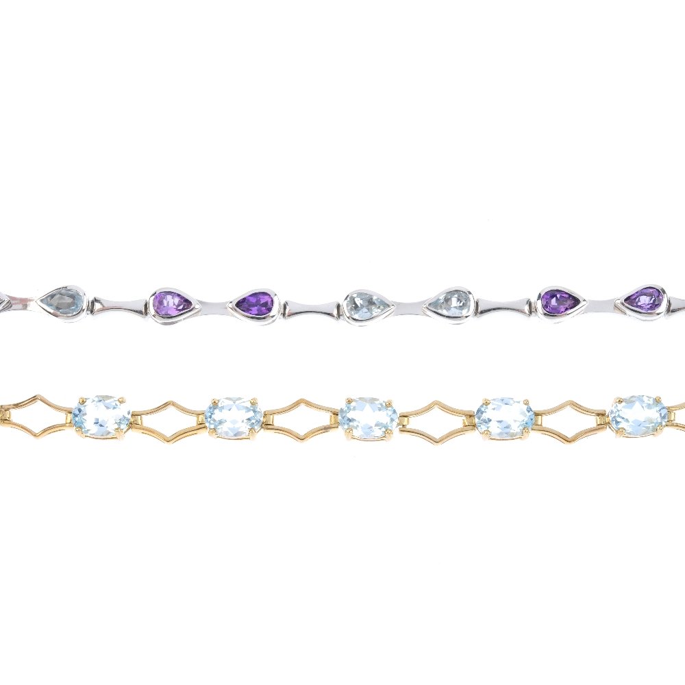 Two 9ct gold gem-set line bracelets. The first designed