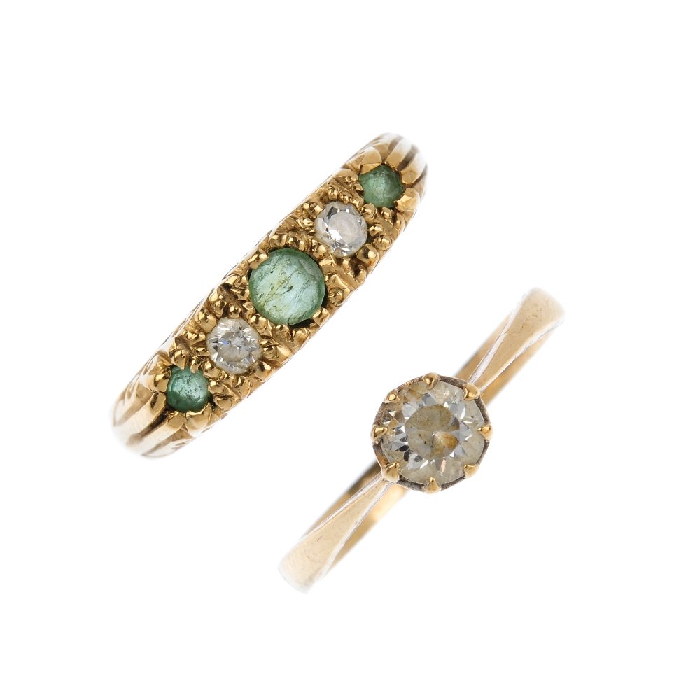 Two 9ct gold gem-set rings. To include an alternating