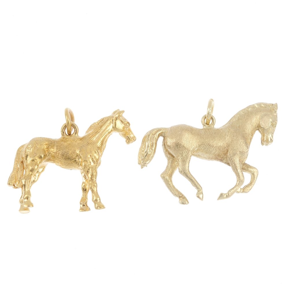 Two 9ct gold horse pendants.
