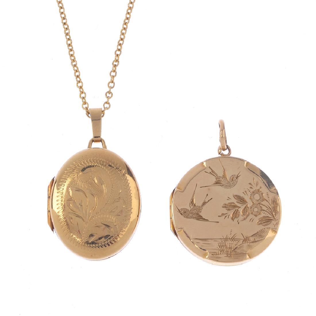Two 9ct gold lockets and a chain. To include an oval