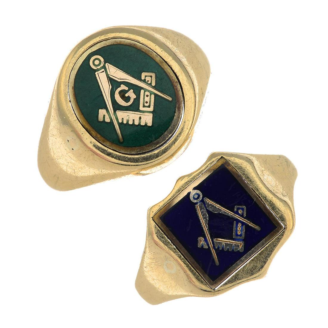 Two 9ct gold Masonic enamel rings.Hallmarks for