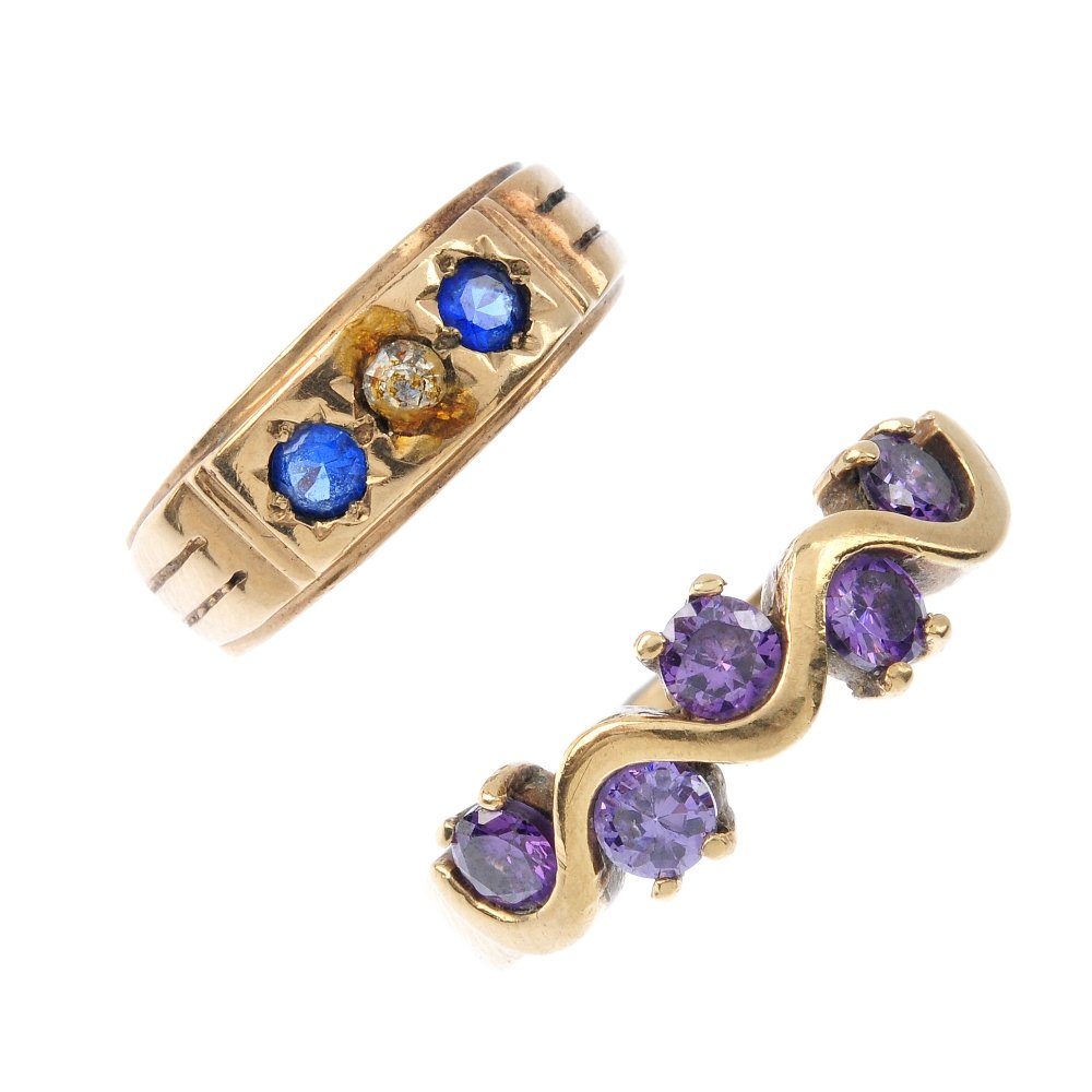 Two 9ct gold paste rings. To include a purple cubic