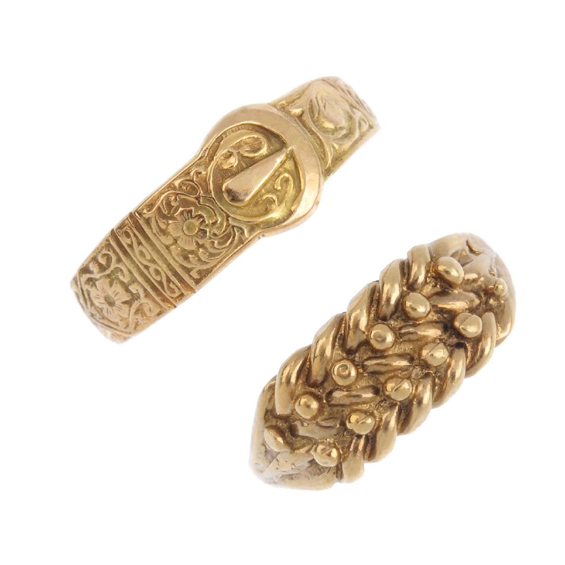 Two 9ct gold rings. To include a keeper ring, together