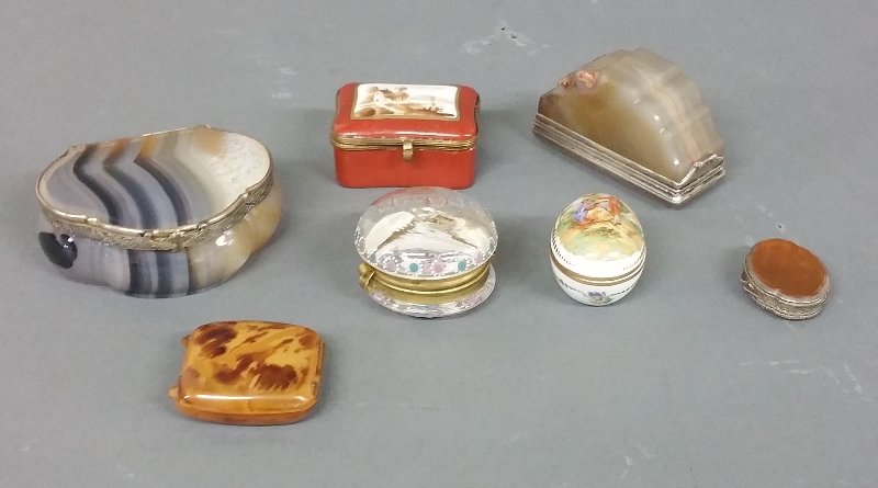 Two agate boxes, each with silver hinges/rims, a